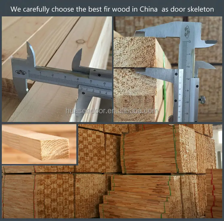 In china, MDF wooden door manufacturers select fir wood or pine wood as door skeleton. Too many factories choose interior fir wood or pine wood as material responding to price competition, we despise to do so.